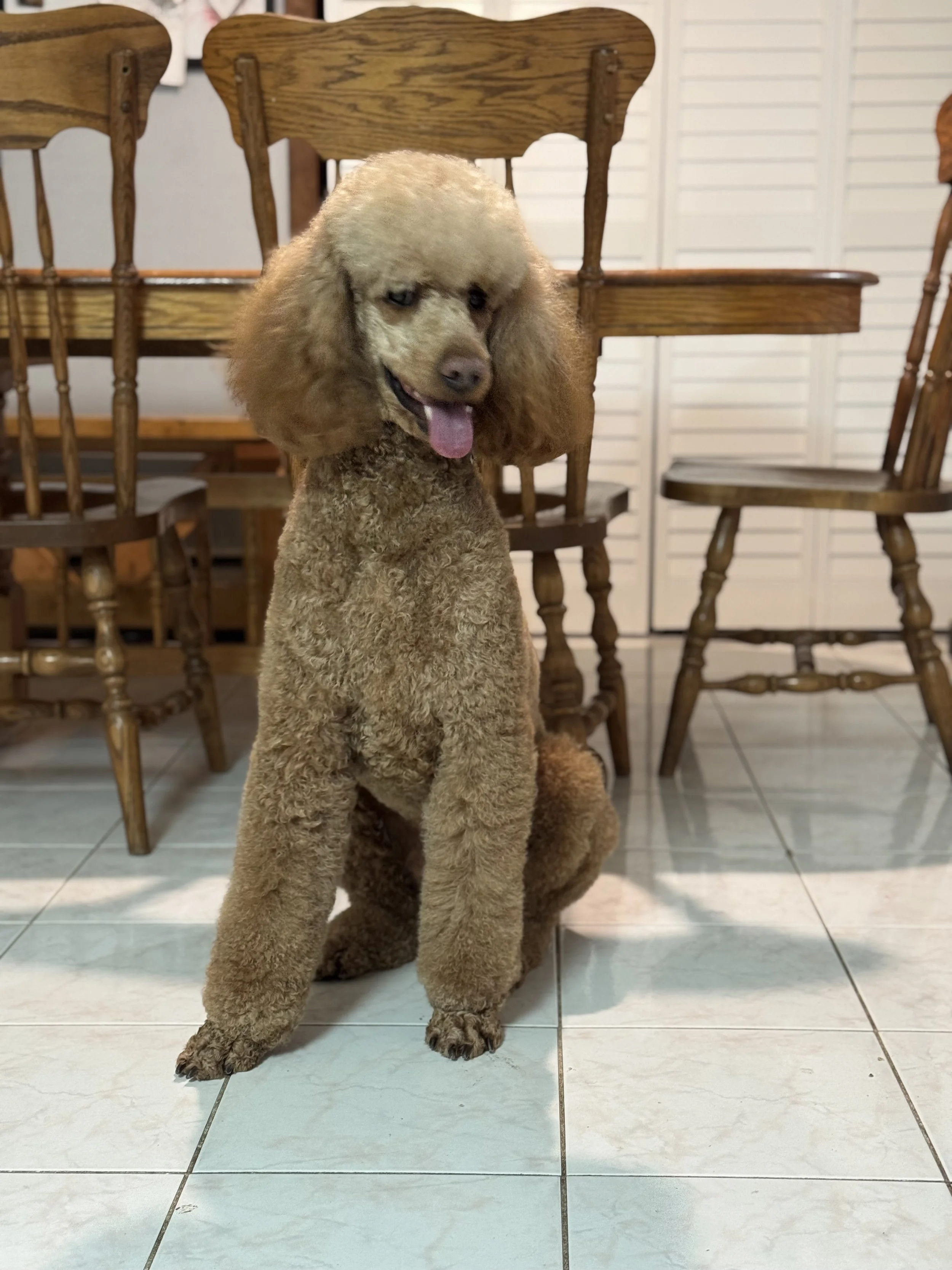 Lucy has completed basic obedience and is so quick to learn She loves to romp and play with her sisters, Misty and Willow outside. Lucy is mid energy and has a wonderful temperament. She is great in the house and with other dogs. She is in our guardian program and lives with her forever family in Chicago, IL. Lucy has had extensive health testing to be eligible for our breeding program. See her genetic test results through Embark here and her OFA results here.